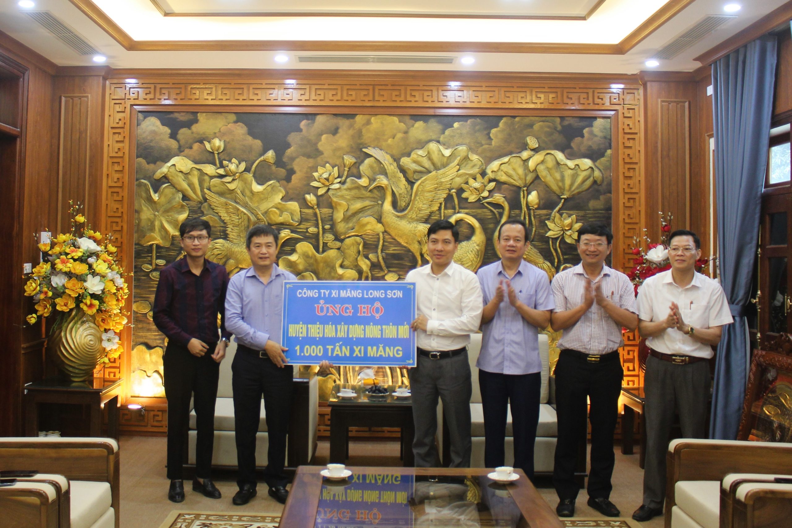 Công ty xi măng Long Sơn ủng hộ huyện Thiệu Hóa 1.000 tấn xi măng xây dựng Nông thôn mới 26/04/2023 Posted 4 Sáng ngày 25/4/2023, Huyện ủy Thiệu Hóa đã tiếp nhận ủng hộ xi măng xây dựng nông thôn mới của Công ty xi măng Long