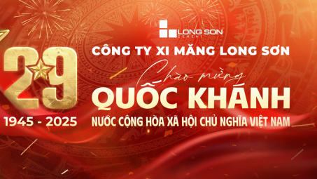 Chào mừng Quốc khánh 2/9, toàn thể cán bộ, công nhân viên Công ty Xi măng Long Sơn càng thêm tự hào và quyết tâm góp sức dựng xây Tổ quốc, để mỗi công trình, mỗi ngôi nhà, mỗi con đường mang dấu ấn Xi măng Long Sơn đều là biểu tượng của sự bền vững, trách nhiệm và niềm tự hào Việt Nam.
